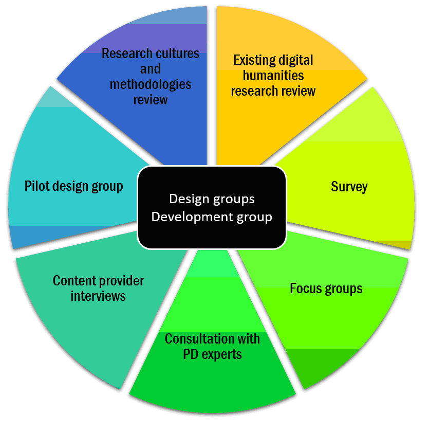 The landscape survey of 500 humanities scholars sought to identify the role of search within humanities research methodology: how it is used across the different subject domains, its current deficiencies and the impact that it has on research results. The survey elucidated responses about existing practice, criticism of current search facilities and how search might be improved. The survey was followed by four focus groups that sought to deepen our understanding about search practice as well as identify any areas that might not have been covered in the survey. These methods enabled the project to address Question 1 and also informed Question 2. To fully address Question 2 we conducted interviews with eightcontent and digitisation providers. These interviews fed into the participatory design process by producing an understanding of developer views and what they thought the limitations were of current search facilities, as well as what they perceived the emerging needs of scholars to be.